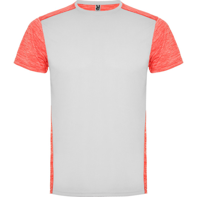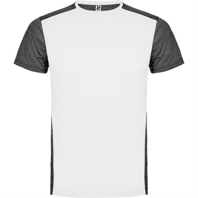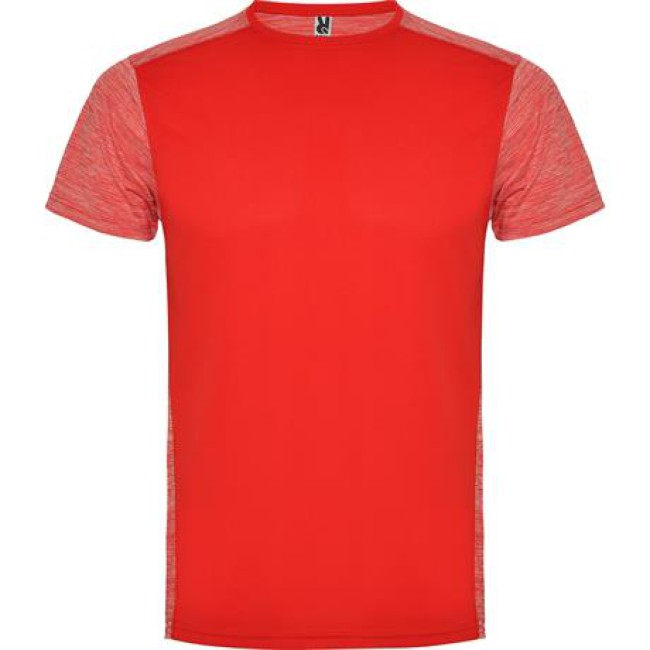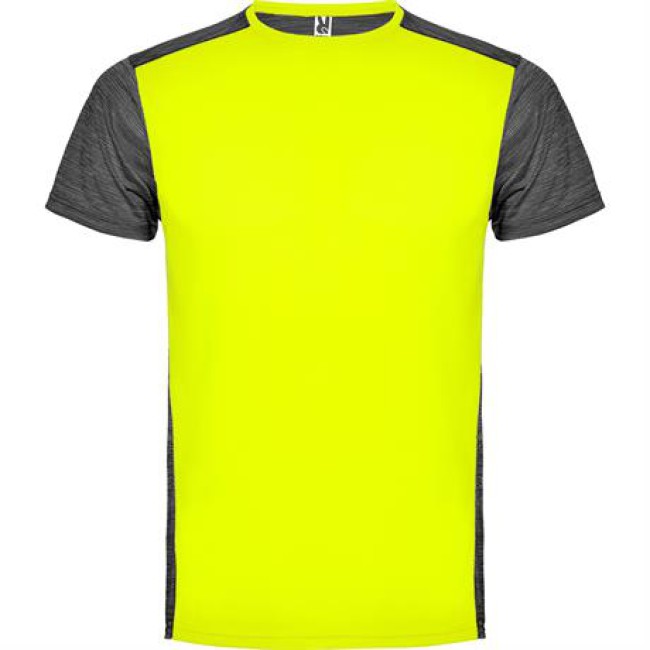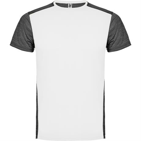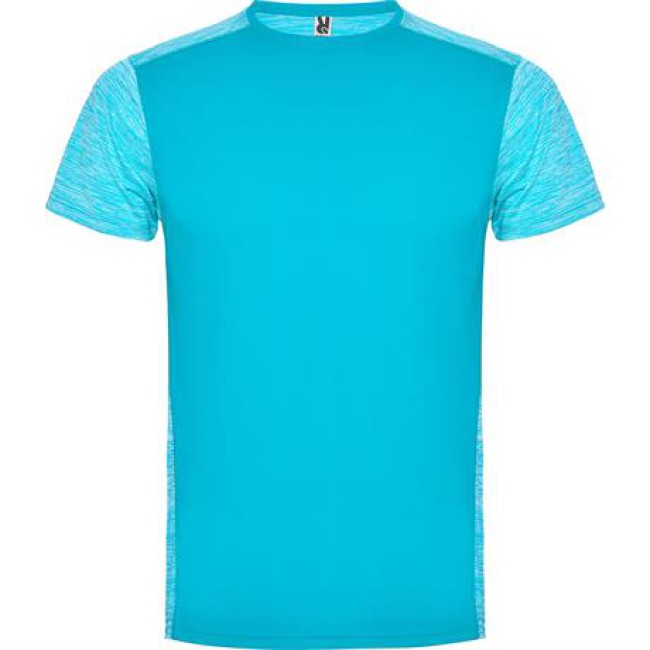 T-shirt tecnica manica corta.1. Girocollo.2. Tessuto a contrasto sul retro, spalle e maniche con due tessuti di poliestere.3. Tessuto pricipale frontale a occhio di pernice e tessuto space dye nella parte posteriore.4. Parte posteriore leggermente più lunga.